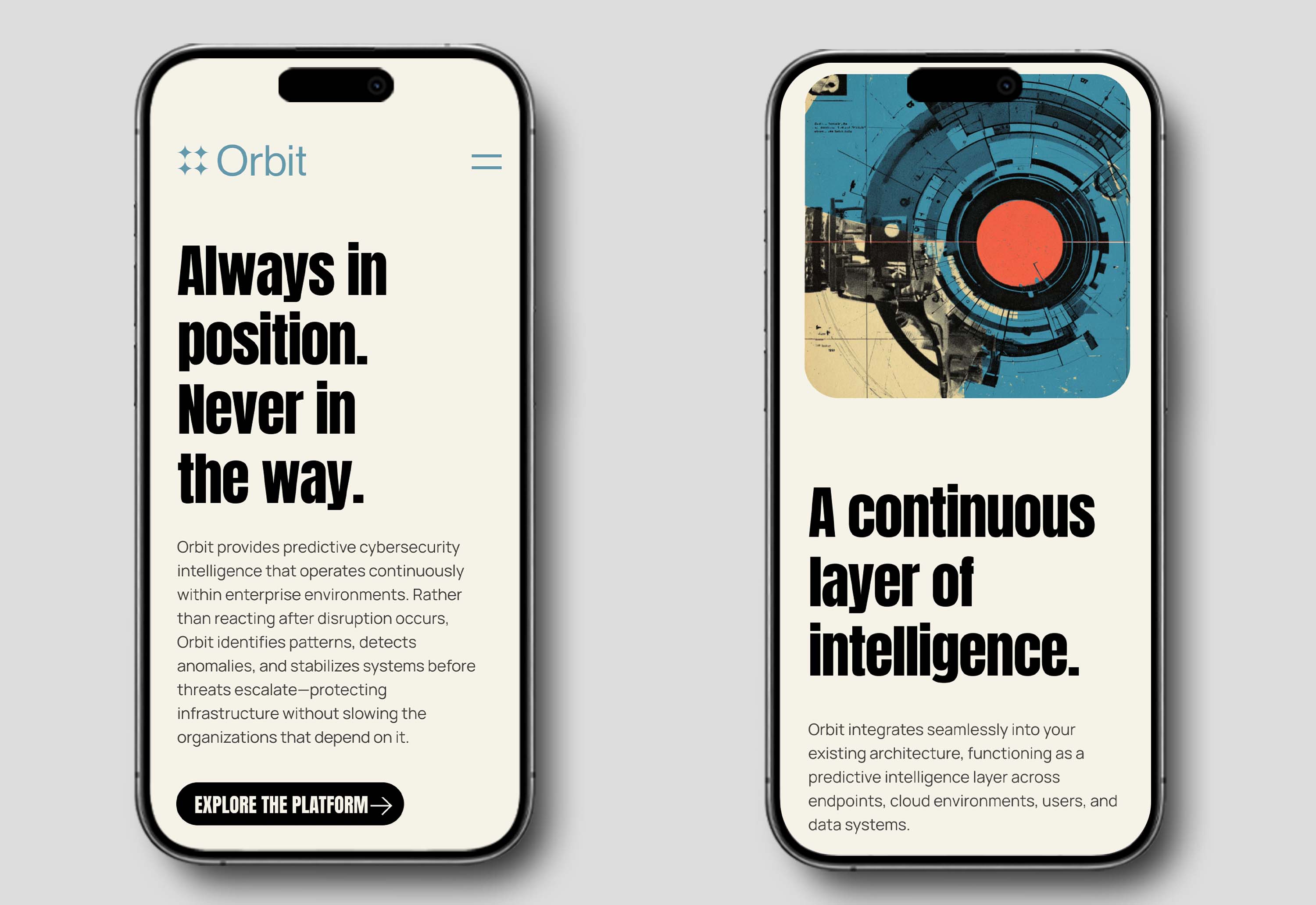 The result is Orbit, a conceptual cybersecurity brand built around the idea of continuous intelligence operating within complex systems.