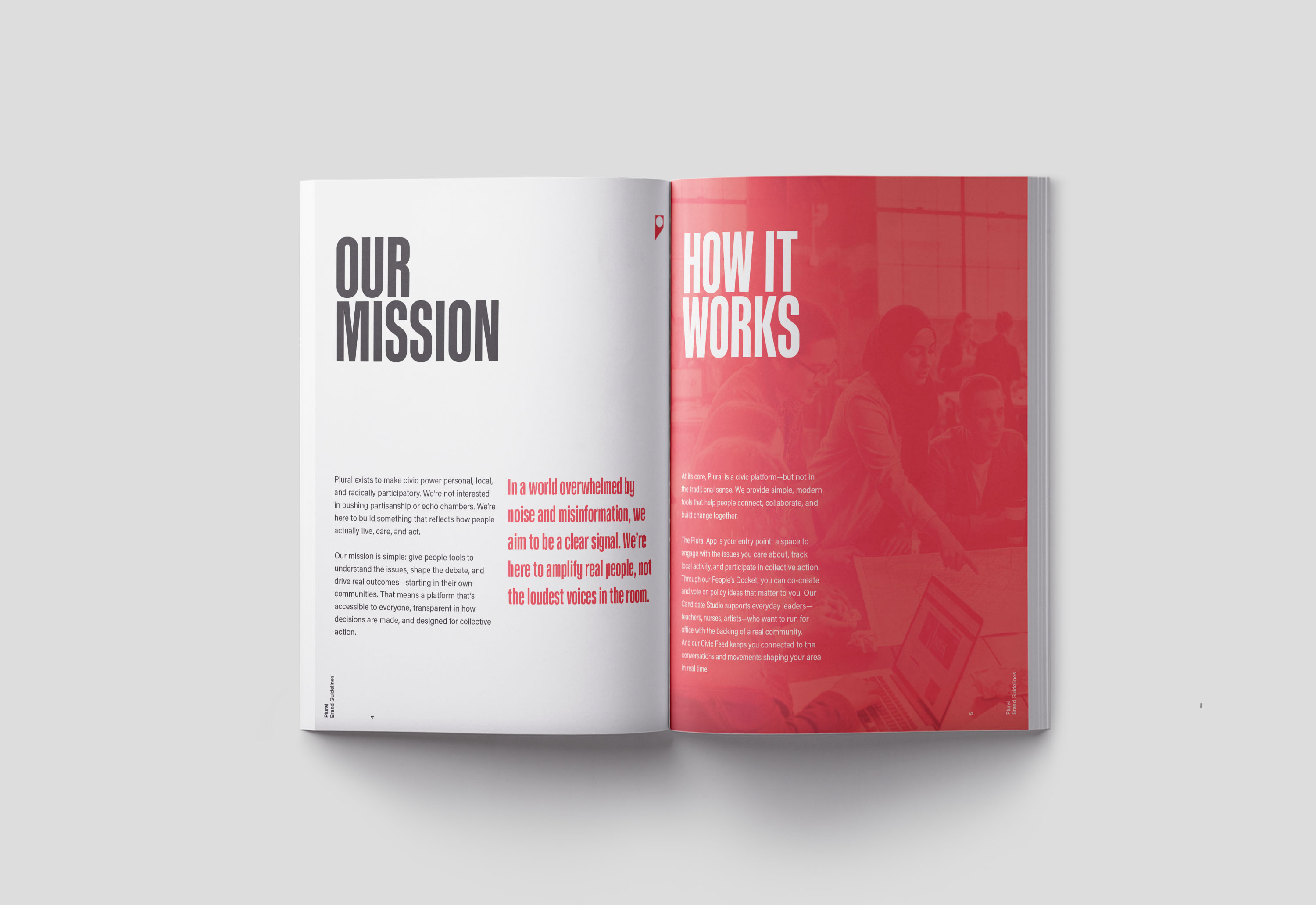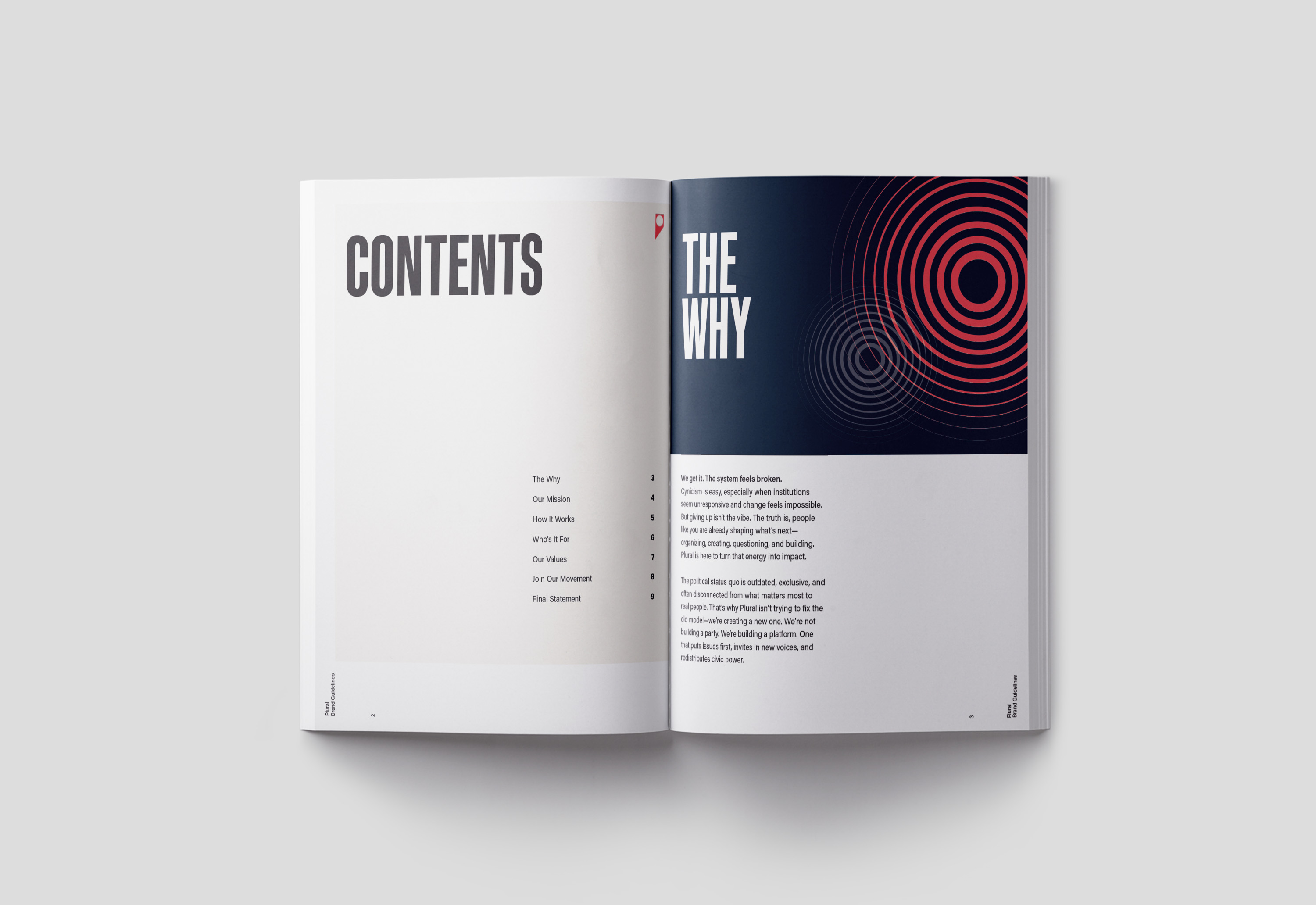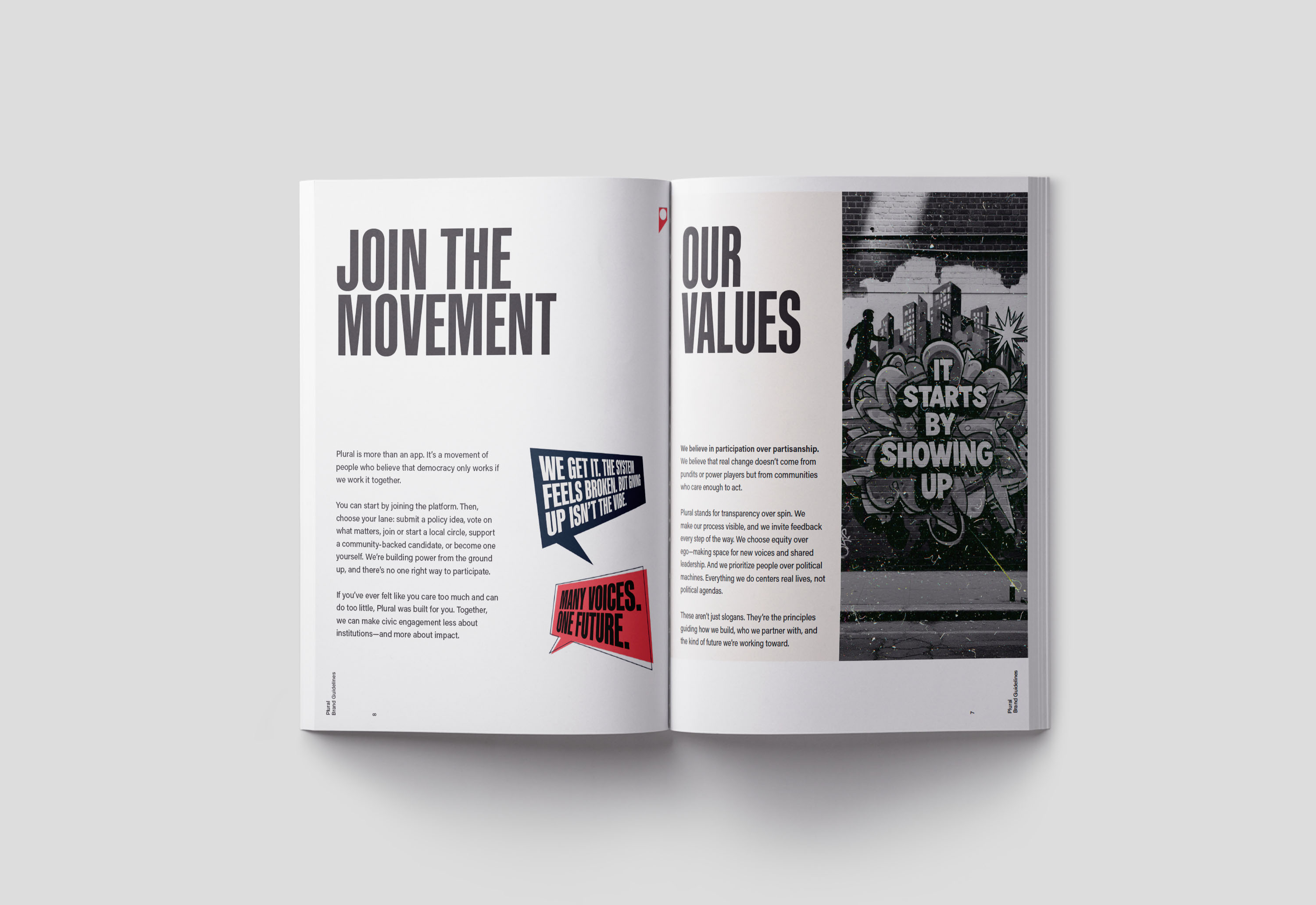 Plural began as a civic platform concept designed to make democratic participation more accessible, relatable, and collective for Gen Z. I defined the core idea—“many voices shaping one shared future”—which inspired the name and shaped a brand that feels like a fresh, authentic movement rather than a political institution. I built the visual and verbal identity around that mission.